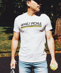 It's no secret that the Dad Strength dads love a good game of picklball. So much in fact that they had their driveway extended and professional lines put down so they could show the other neighborhood rival dads who's boss. One thing led to another and now they spoonsor a leagye with this perfect Tee. Throwback style that says peak 80's, but for the person who's game says, "I didn't peak in the 80's."