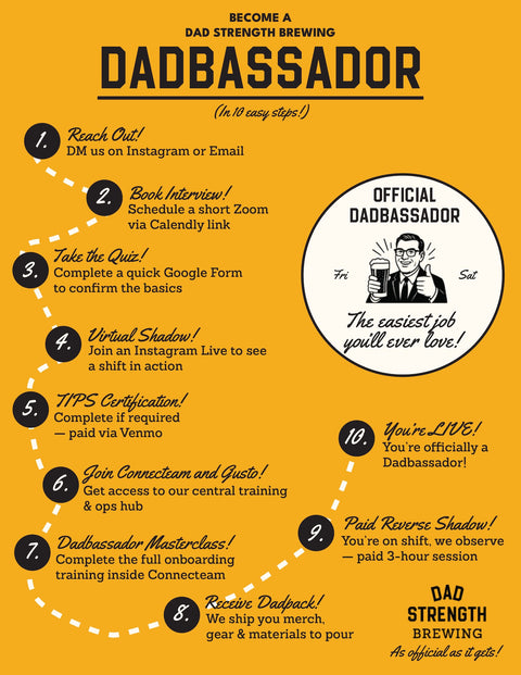 And get paid to share Dad Strength with the world! Nope, not too good to be true. It’s the Dad Strength Brewing Dadbassador Program—the gig you’ve been unknowingly training for your whole life. If you...